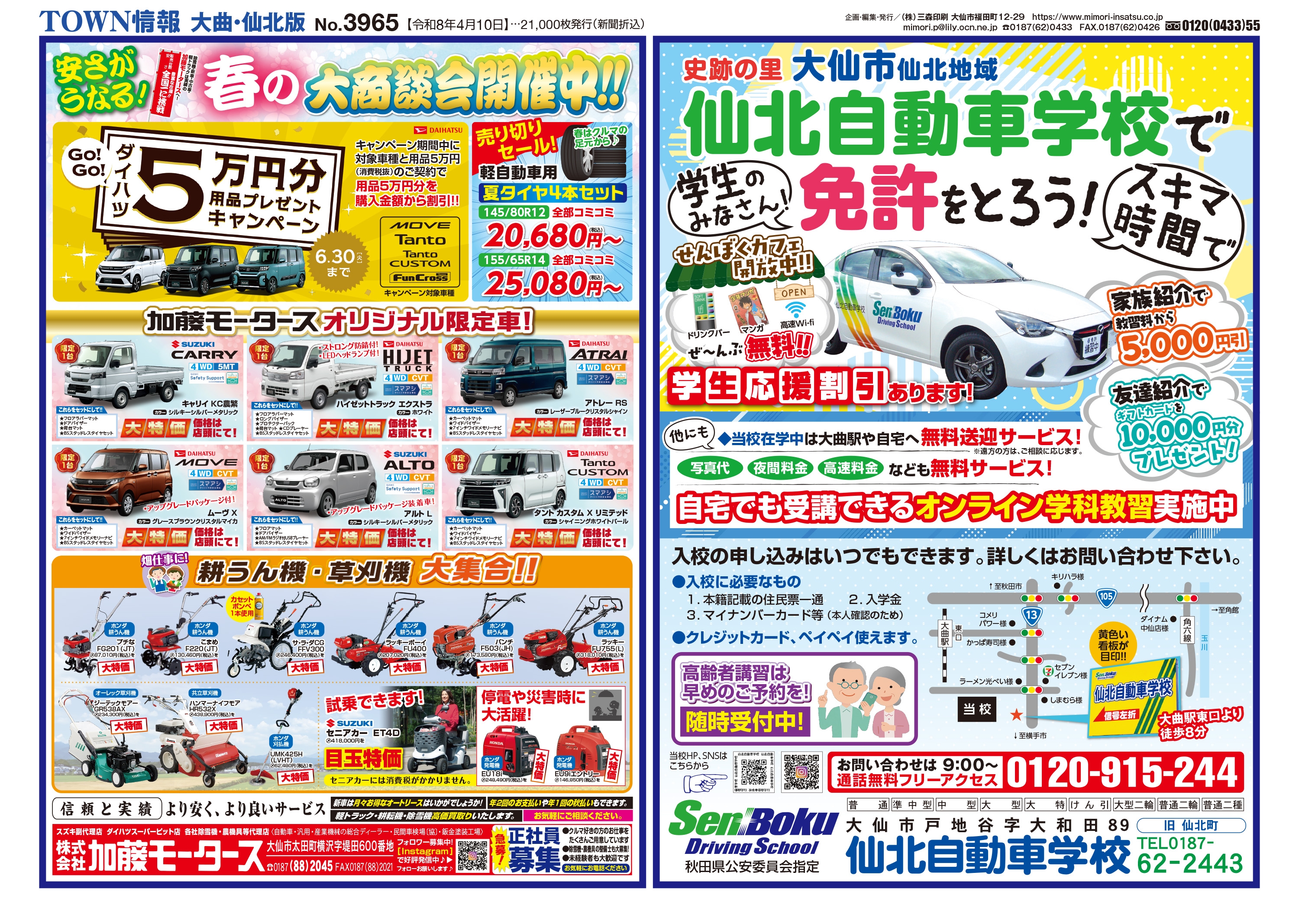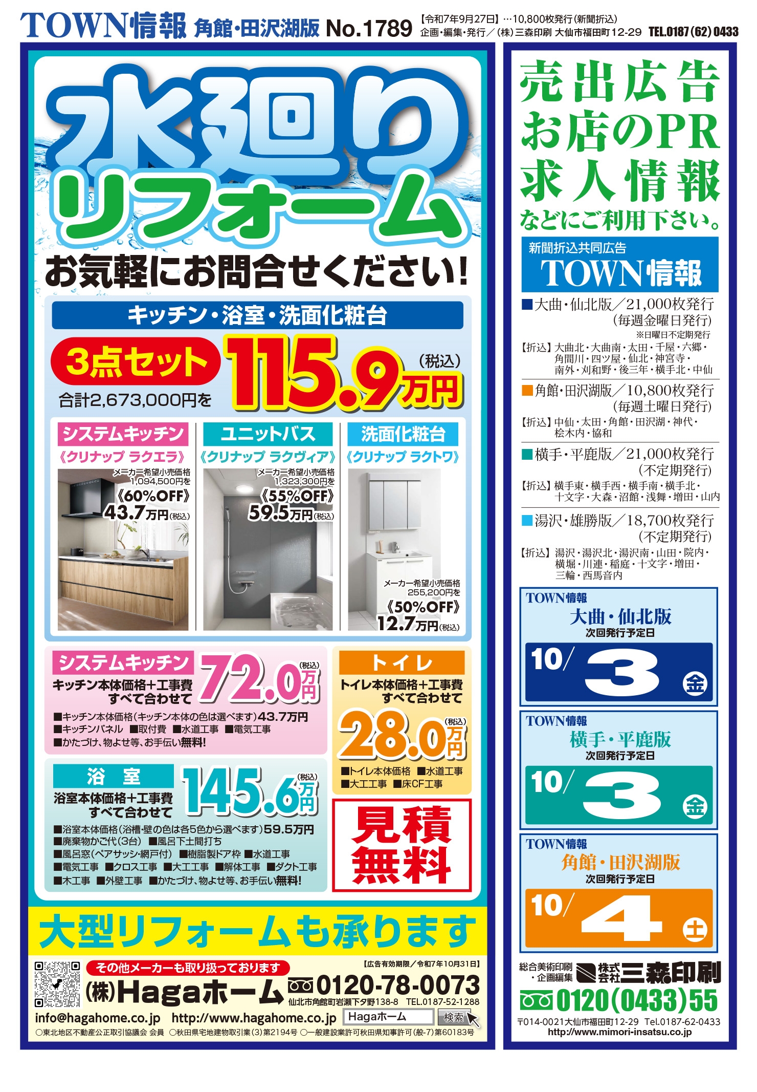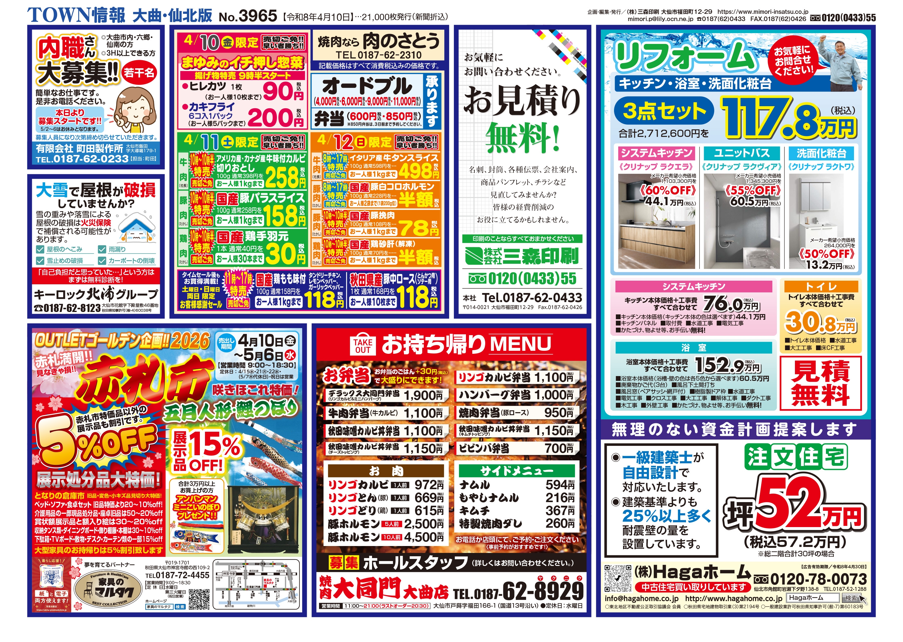 大曲・仙北、横手・平鹿、湯沢・雄勝に配布されるTOWN情報幅広い地域をカバーする情報を掲載中