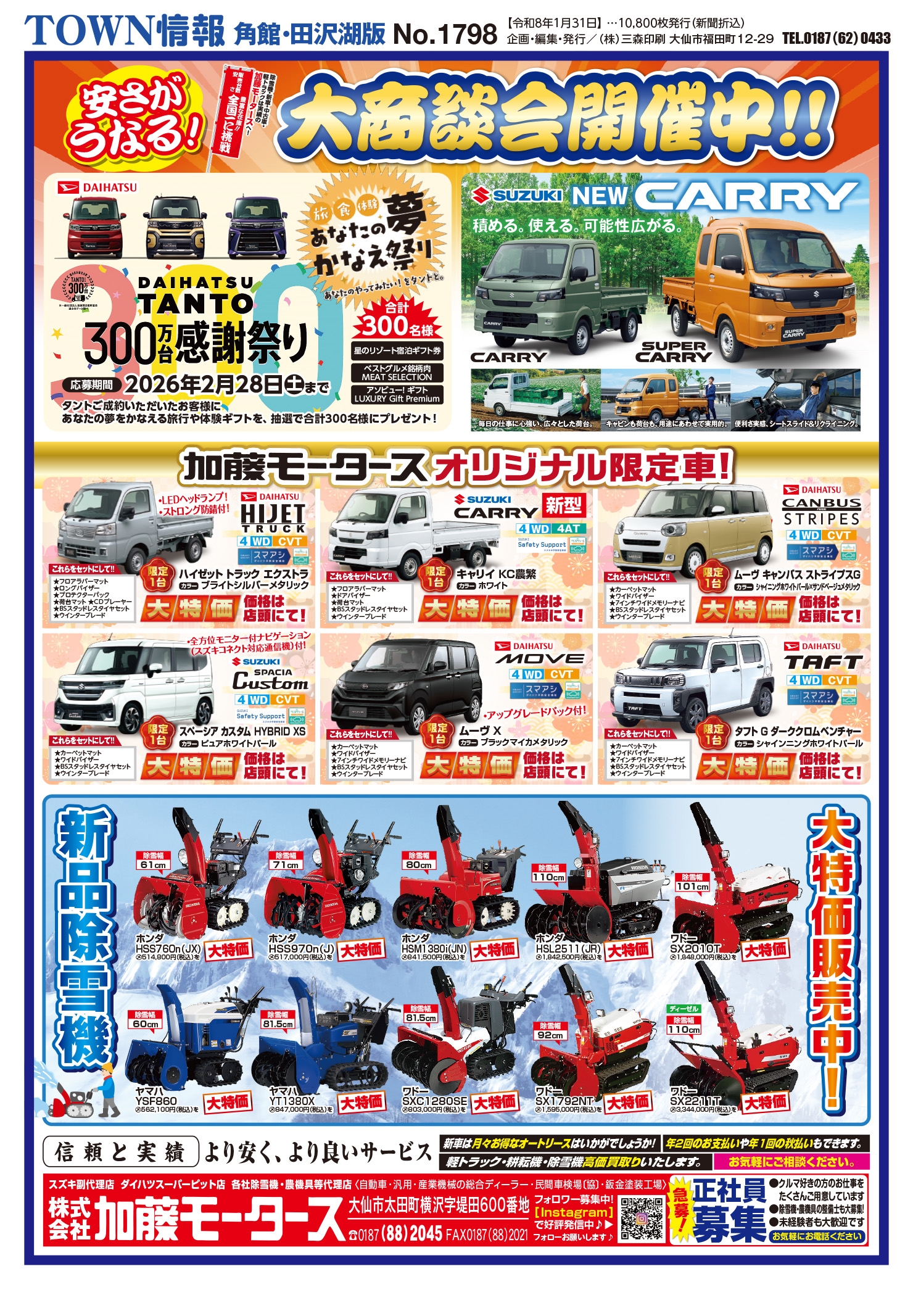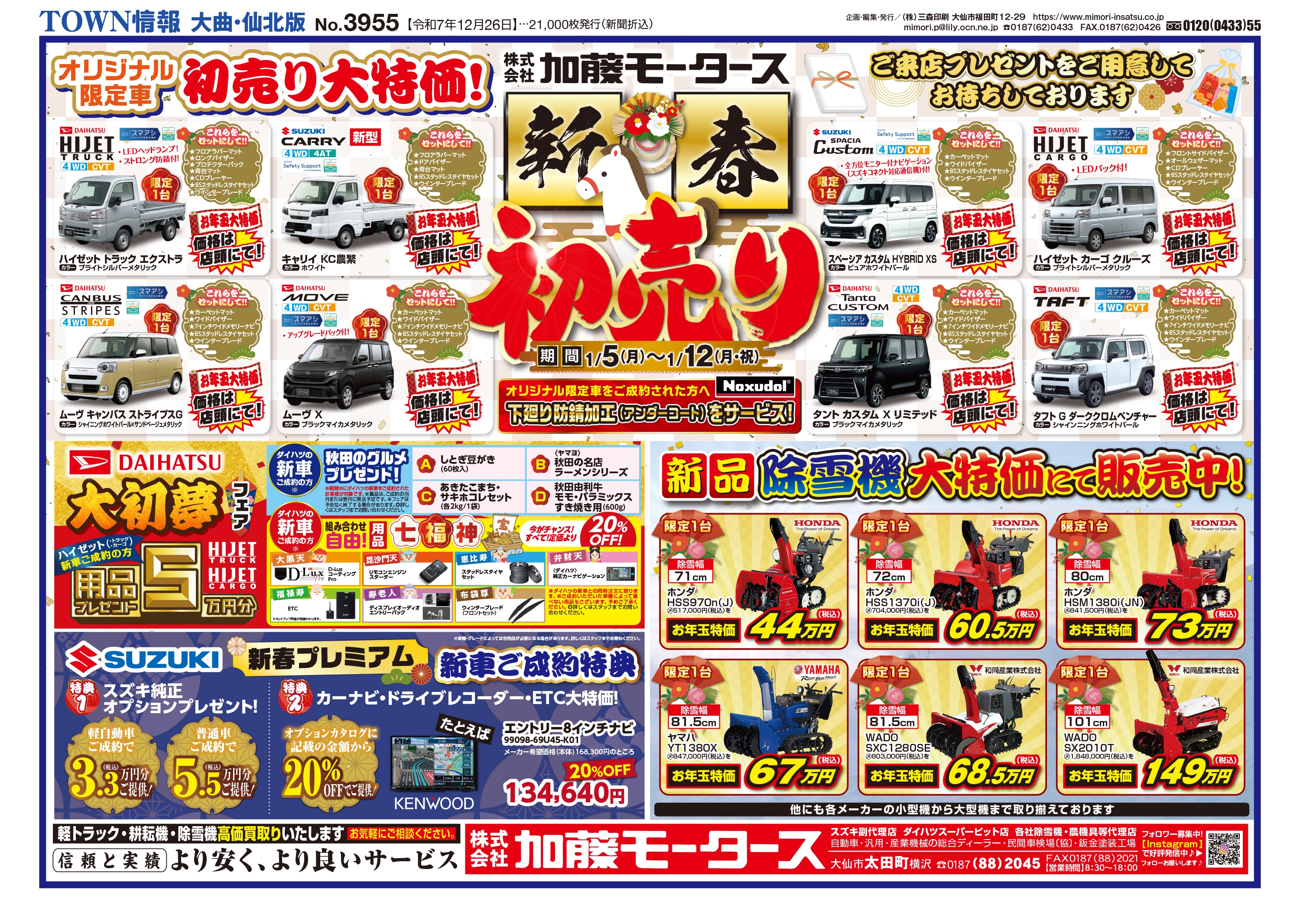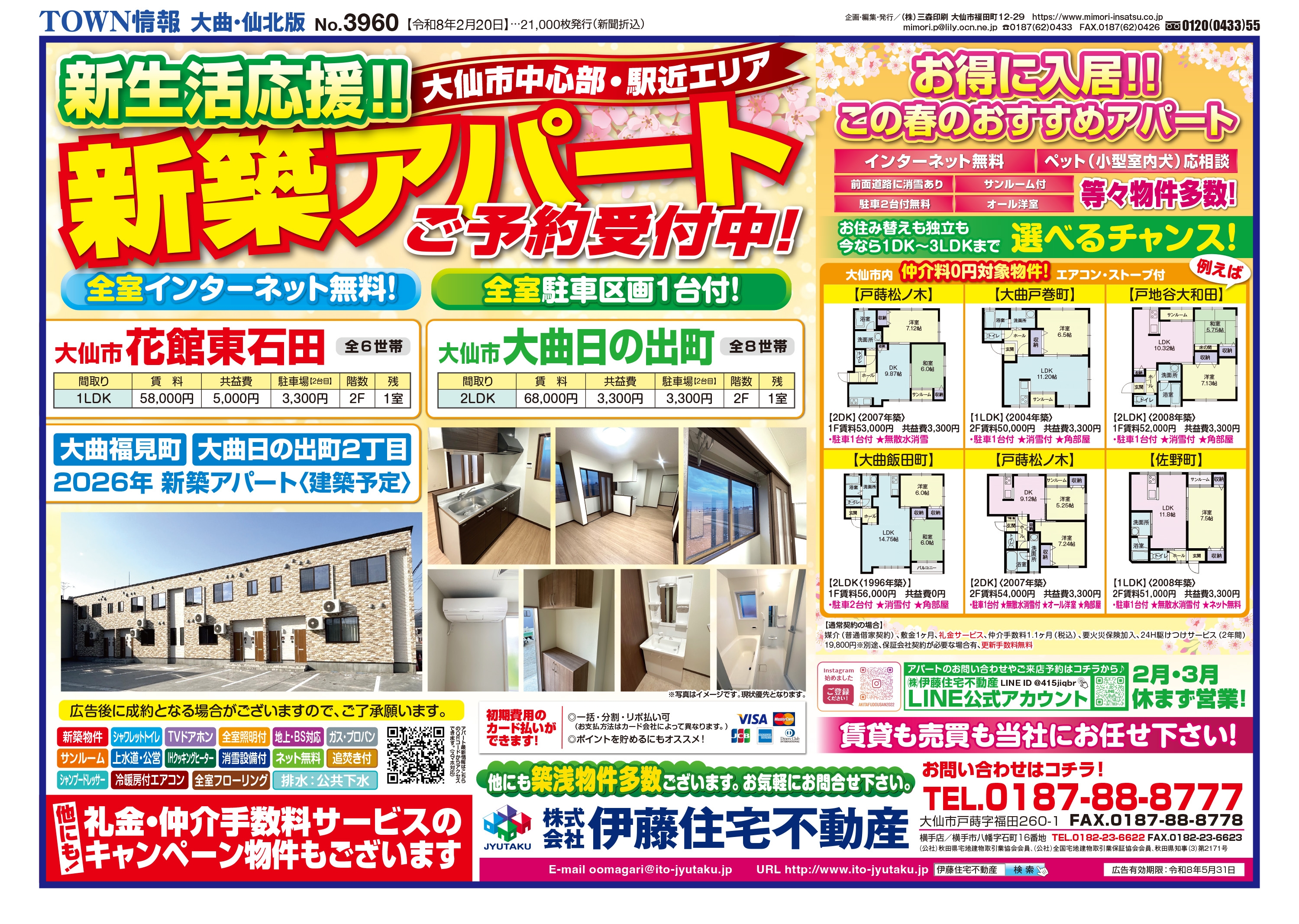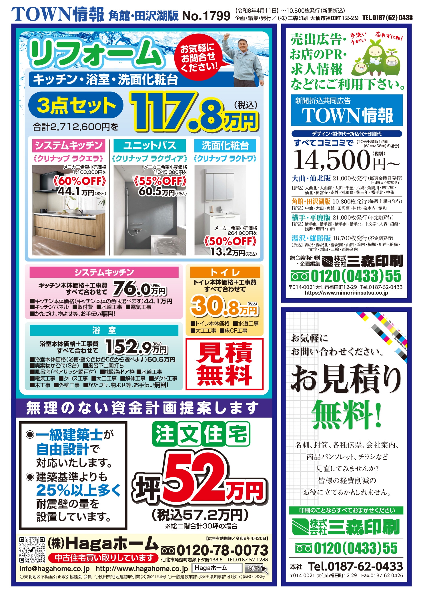 大曲・仙北、横手・平鹿、湯沢・雄勝に配布されるTOWN情報幅広い地域をカバーする情報を掲載中